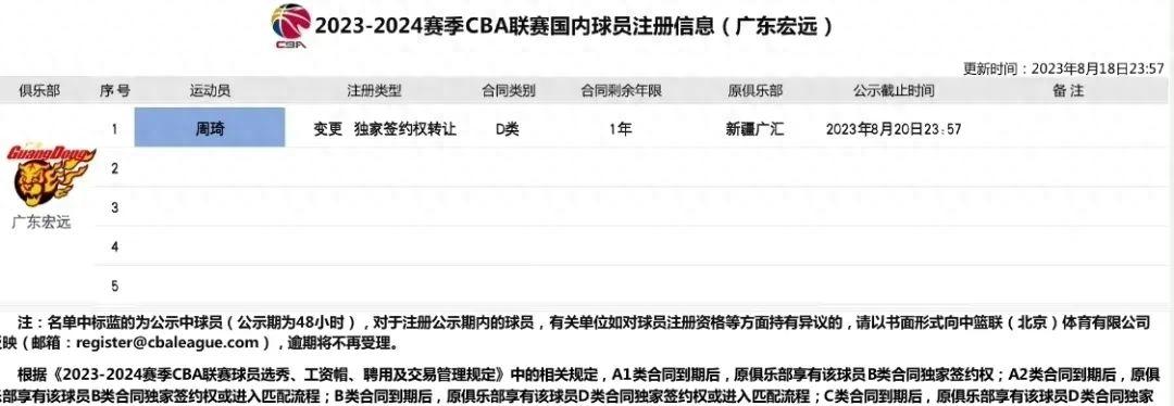 北京時間8月19日,今天凌晨中國籃協的一紙公告,在國內籃壇引發地震效應,籃協官方對外宣佈,新疆廣匯與廣東宏遠兩傢俱樂部達成交易協議,國手周琦與趙睿互換東家,趕在男籃世界盃開打前,終於解決了周琦與新疆男籃的合約糾紛。
