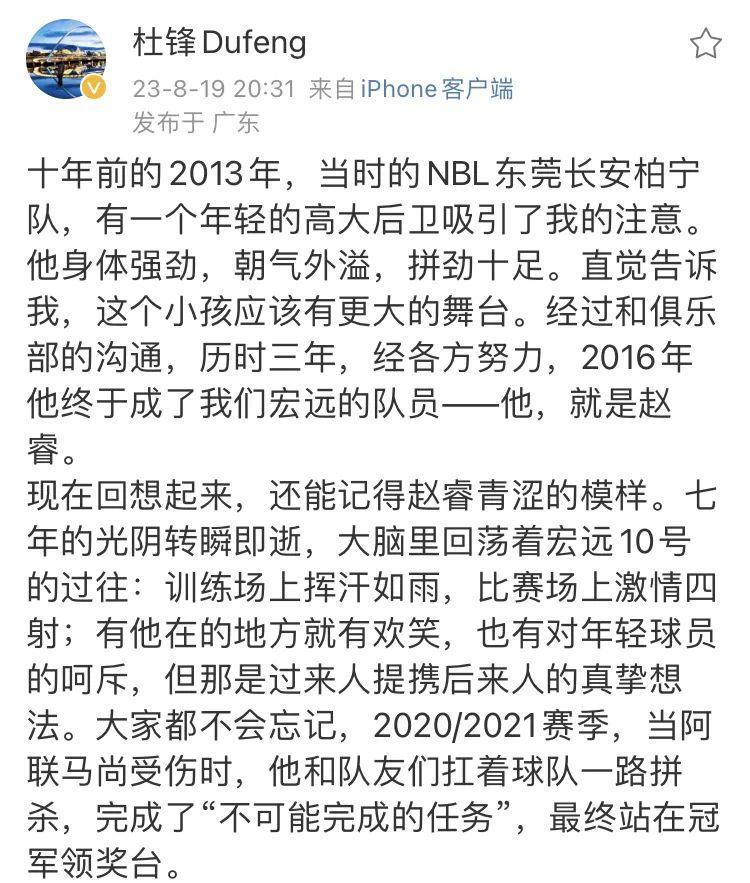 看到杜鋒在社交媒體上髮長文告別愛徒,寫得如此真摯的時候。