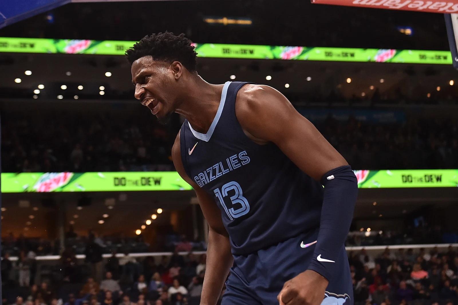 在灰熊,五號位上有亞當斯這種壯漢幫他卡位。