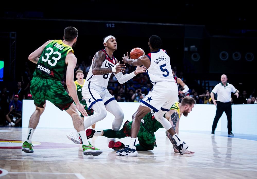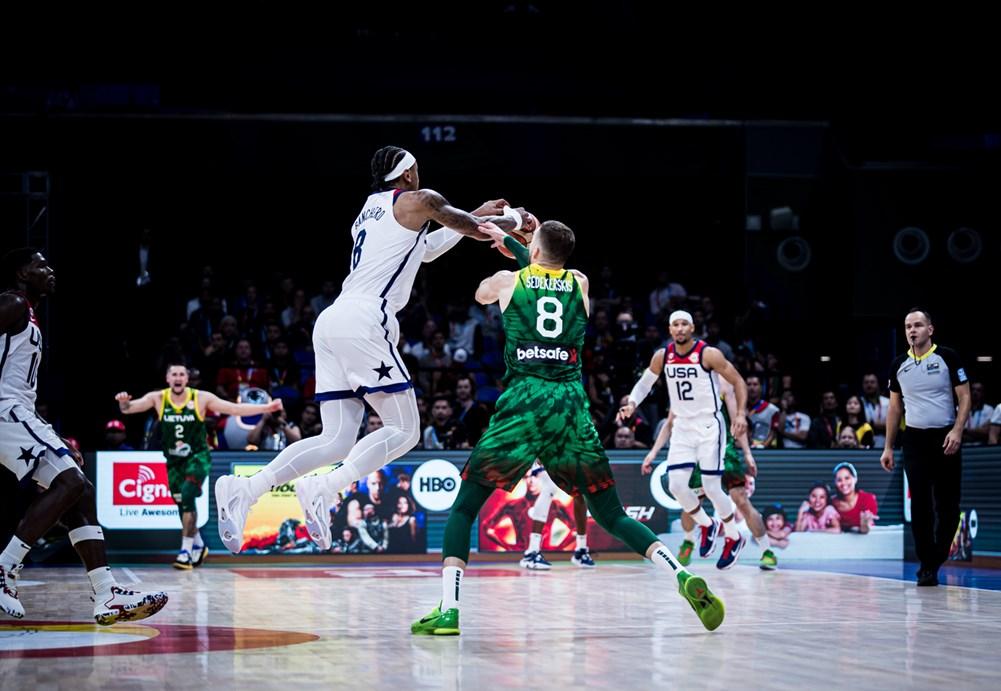 面對立陶宛的雙塔組合,美國隊孱弱的五號位根本沒有招架之力。
