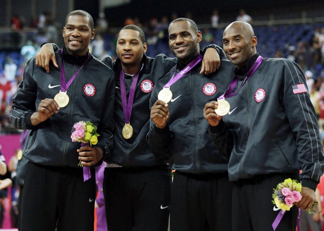 最近二十年裏,美國男籃最具代表性的四位球星,分別是詹姆斯,科比,杜蘭特,安東尼。