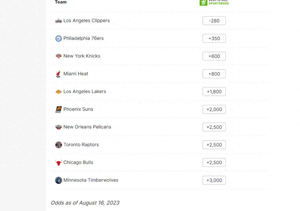 快船得到哈登的賠率爲-280,這也是自由市場上公認的最有希望完成交易的球隊。