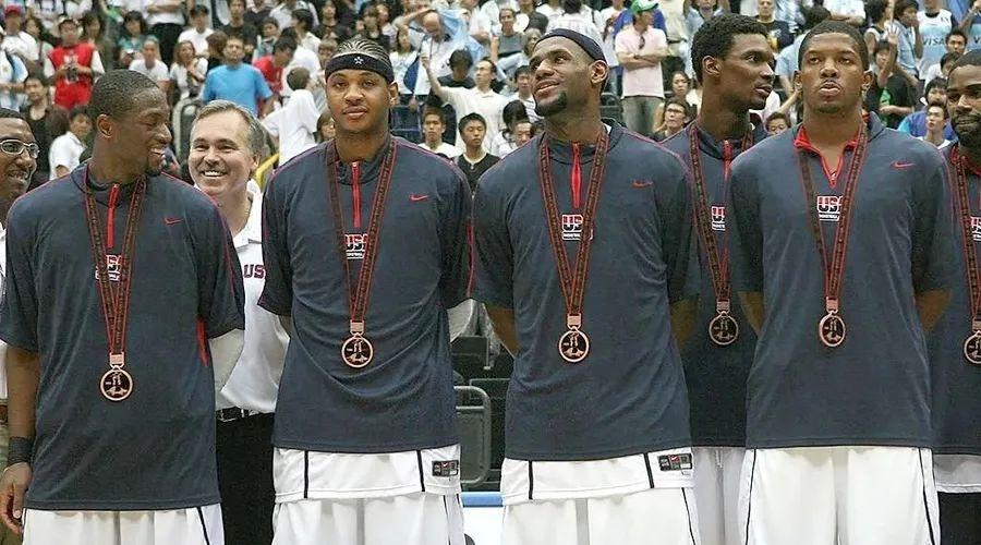 人們猜想,這也是勒布朗試圖攢這個局的原因。他經歷過美國男籃千禧年後的那個低谷,他國家隊生涯的前兩次大賽都只拿到了銅牌。在2004年的雅典,他、韋德和安東尼在板凳席上看球的時間遠超打球的時間。而在2006年的日本,帕帕盧卡斯、斯潘諾里斯和“小鯊魚”斯克塞尼提斯給年輕的美國隊好好上了一課。在北京拿到的金牌是他職業生涯裏第一次真正贏得一項重要的冠軍。所以,當全世界的籃球迷都開始討論諸如“世界籃球水平發展太快了”、“美國是不是不行了”、“歐洲籃球纔是最好的籃球”之類的話題時,他是真正能夠感同身受的那個人。