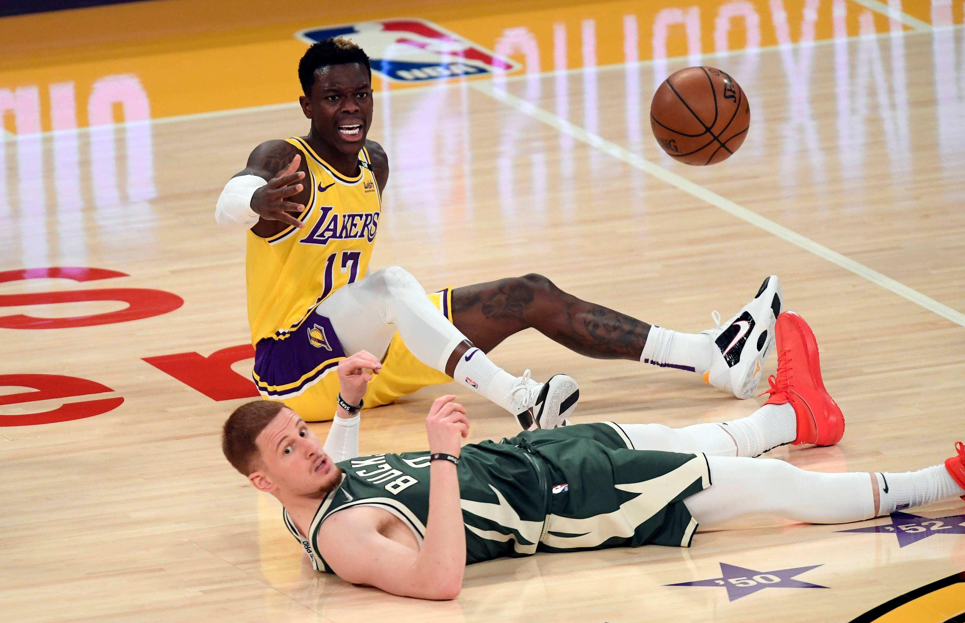 丹尼斯-施羅德今天到湖人隊報道,與球隊完成了第一次訓練。在接受採訪時他向球隊表達了忠心,甚至表示可以爲湖人免費打球。