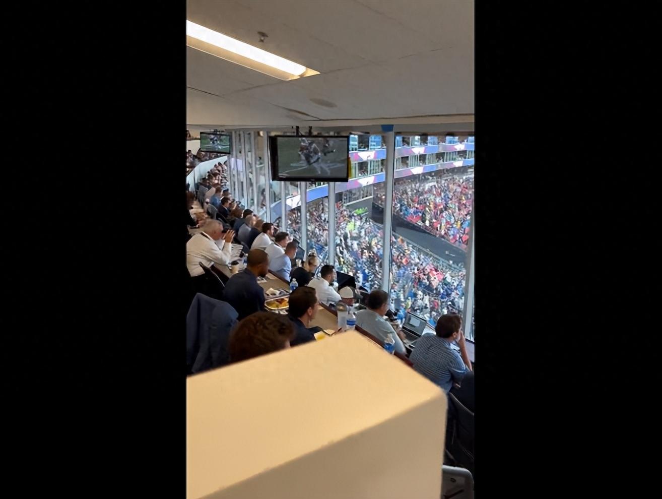 雖然近年來也時常有美國體育媒體大面積裁人的新聞,許多報紙、雜誌、電視臺都快辦不下去了,但在愛國者隊的媒體間裏,我大概數了一下,作爲一場常規賽就有大約150名記者到場,如果算上現場的攝影攝像記者和轉播團隊,其到場媒體數量就已經突破了200人之巨。更別說這200人都是嚴肅認真的媒體朋友,在這裏你看不到舉着手機直播的自媒體,現場充斥的仍是鍵盤噼裏啪啦的打字聲。