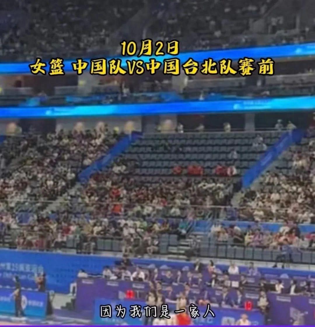 女籃比賽中,中國隊對陣臺灣省隊,賽前播放的《相親相愛一家人》;
