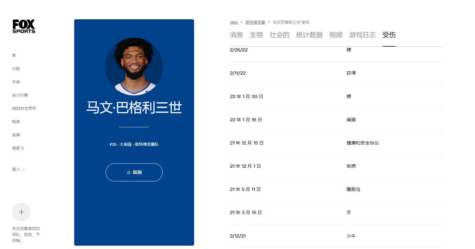 根據美國媒體Fox Sports統計,自2018年被選中以來,巴格利四年時間已經受傷24次。