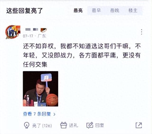 在當時,就連廣東隊自己的球迷都忍不住搖頭,認爲選擇張文逸,還不如棄權。