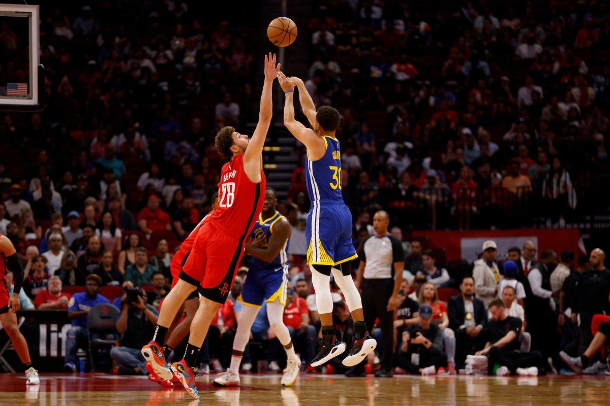 隨後,他又連續投中三記三分,短短2分半的時間裏,命中4記三分,砍下12分,既射懵了火箭隊的防守球員,也射崩了這場比賽,直接改寫了比賽結局。