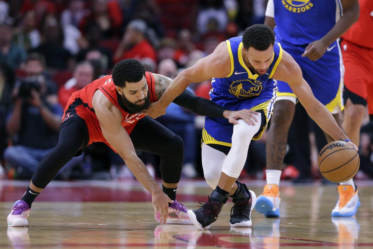 比賽還剩五分鐘時,庫裏先用一記不講理的招牌三分,打破了自己的得分僵局。