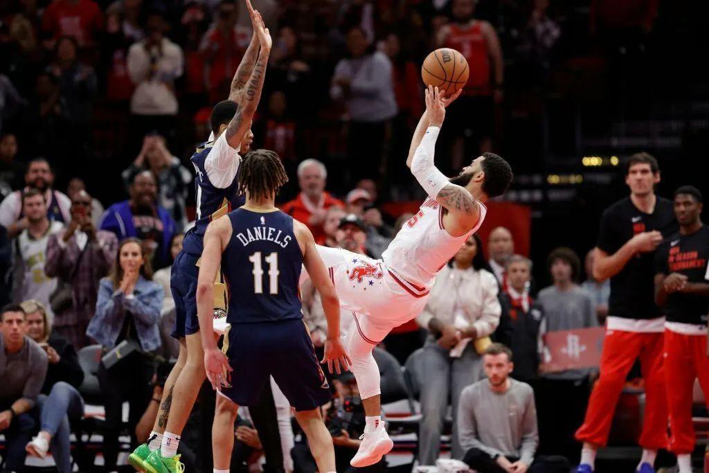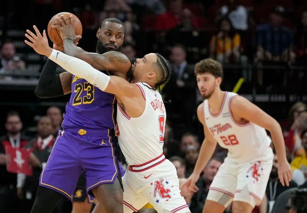 這纔是2023年的11月,但在紅藍相間、寫着H-town字樣的季中邀請賽特製地板上,豐田中心裏彷彿正進行着一場激烈的季後賽。
