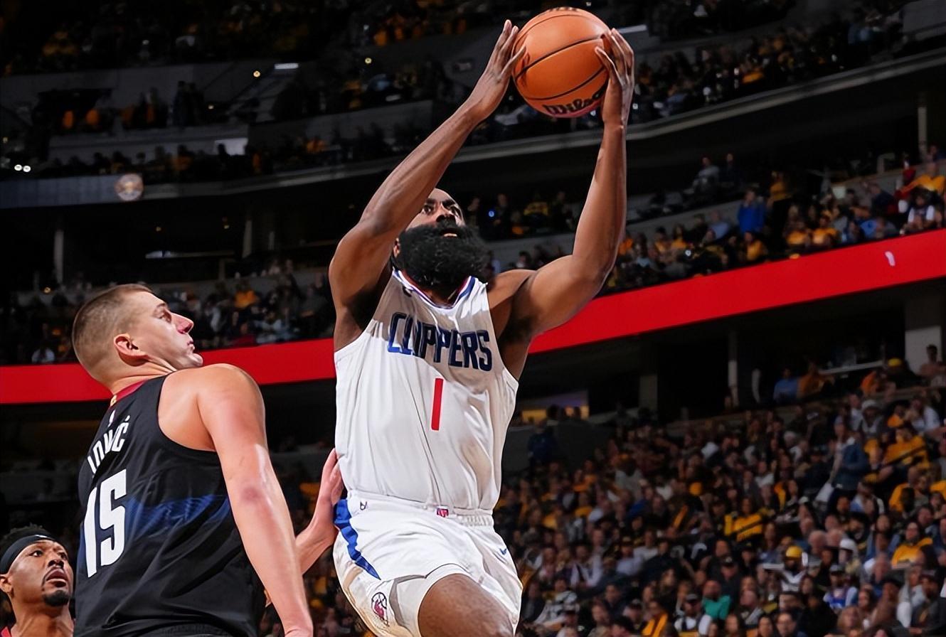 比賽還剩2分46秒就結束,快船領先兩分,哈登要到了一次在左側45度三分線外單打約基奇的機會。如果是5年前,這會是一次輕鬆加寫意的單挑。哈登在很長的時間裏都被稱作“掘金剋星”,就是因爲約基奇怎麼也防不了他和卡佩拉之間的擋拆。無論約基奇選擇延誤、夾擊、換防還是沉退,哈登都能把他喫得一乾二淨。這一次,哈登把他的那些招牌動作重演了一遍,胯下運球,重心晃動,從左路銜枚疾走,過掉約基奇,左手上籃,打板——不中。