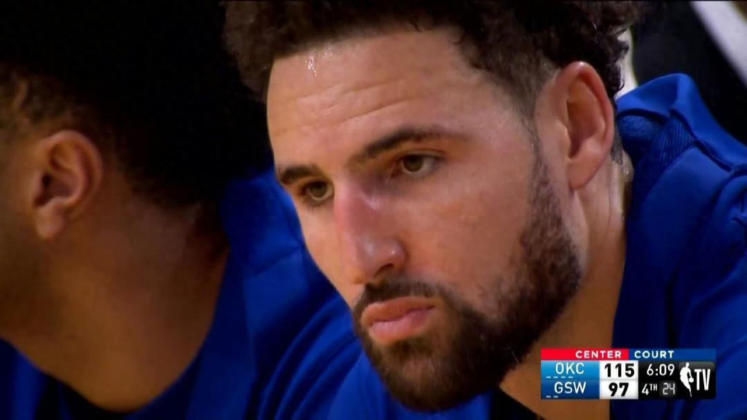 最近的兩場球,克萊就比根本沒打的庫裏多進了一個球,面對森林裏被驅逐,打雷霆10投1中,得到5分2籃板3助攻1搶斷。