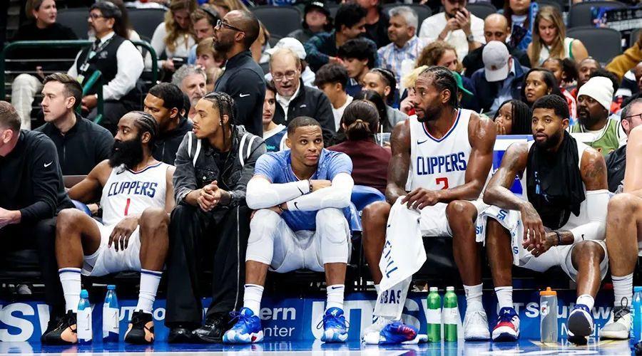 連敗始於哈登登船的那一天。據說是老闆鮑爾默的一個電話促成了這筆交易,快船拆掉了半條板凳席,清空了原本令人豔羨的鋒線儲備小莫里斯、科文頓、巴圖姆和小馬丁,讓萊昂納德、保羅·喬治、威斯布魯克和哈登的名字同時出現在首發名單中。