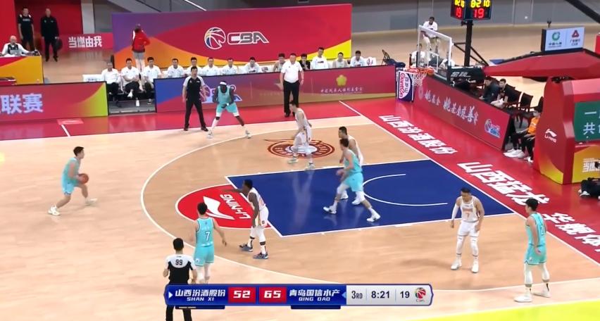 比賽第三節,青島四名球員站在三分線外,通過頻繁的轉移球,連續完成團隊配合。