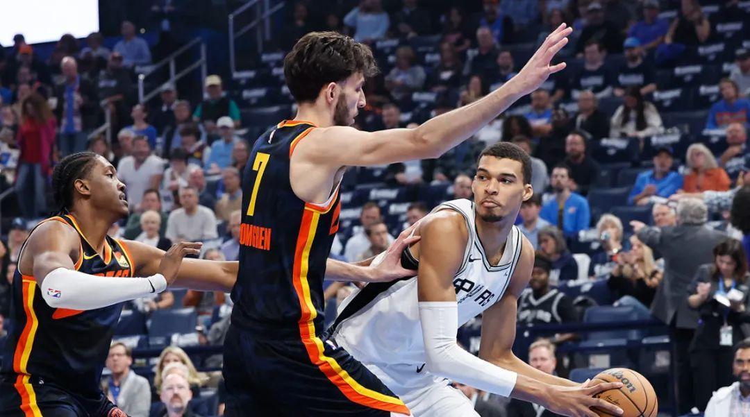 雷霆和馬刺早已不是一個檔次的球隊,在重建數年後,雷霆已經有了足夠成熟的體系和聯盟最頂級的球星,他們上賽季在沒有切特的情況下依然打出40勝戰績,如今的亞歷山大更是完完全全的外線錯位怪,頂着控衛身份,一二三號位打法兼備,輕鬆吸引雙人甚至三人夾擊。今年的雷霆也投出了聯盟第一的三分命中率,這種外線威脅和空間引力,對內線來說幾乎是天堂。