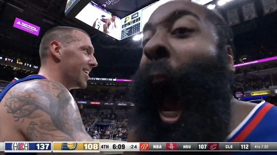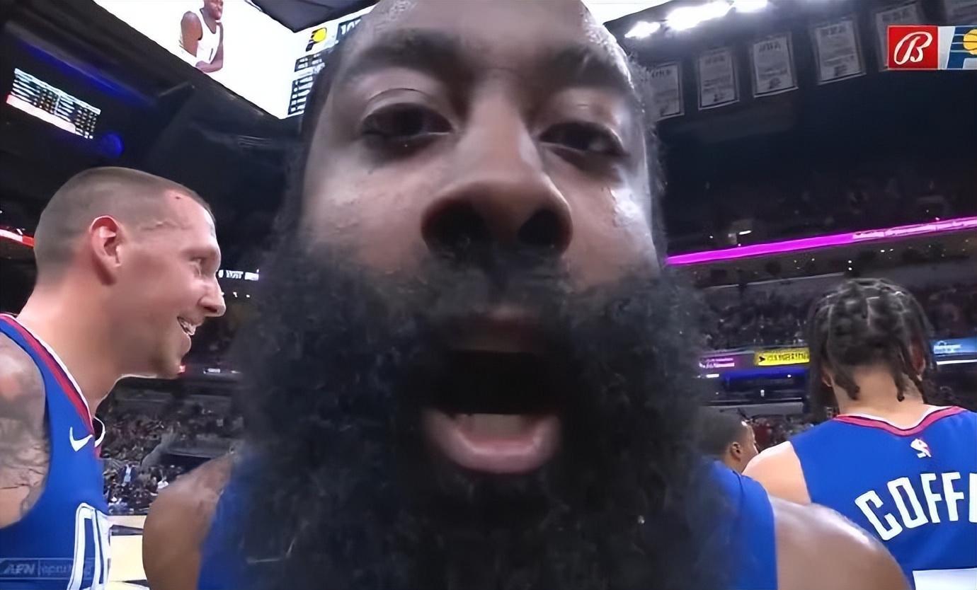 大鬍子起身之後怒吼慶祝,對着鏡頭,這樣的哈登久違了。