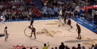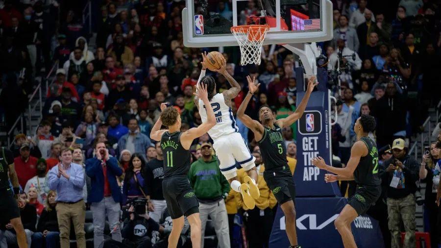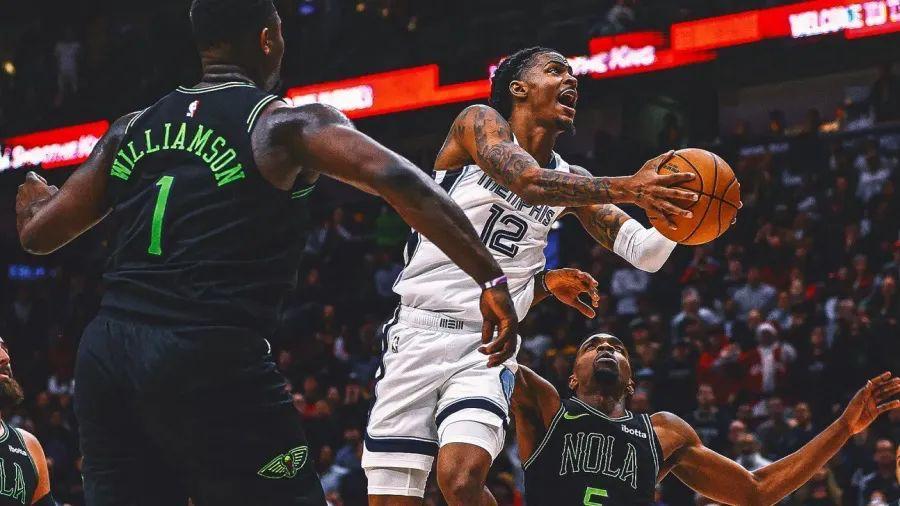 作爲右手將,莫蘭特這場比賽多次上演左路強突,他的第一步爆發力已經是聯盟頂尖,再配合極快的節奏變化,只要一個掩護,就能讓對方兩個防守人都變成木樁。尤其是換防的錫安,幾乎來不及做任何反應,只能避免防守犯規。