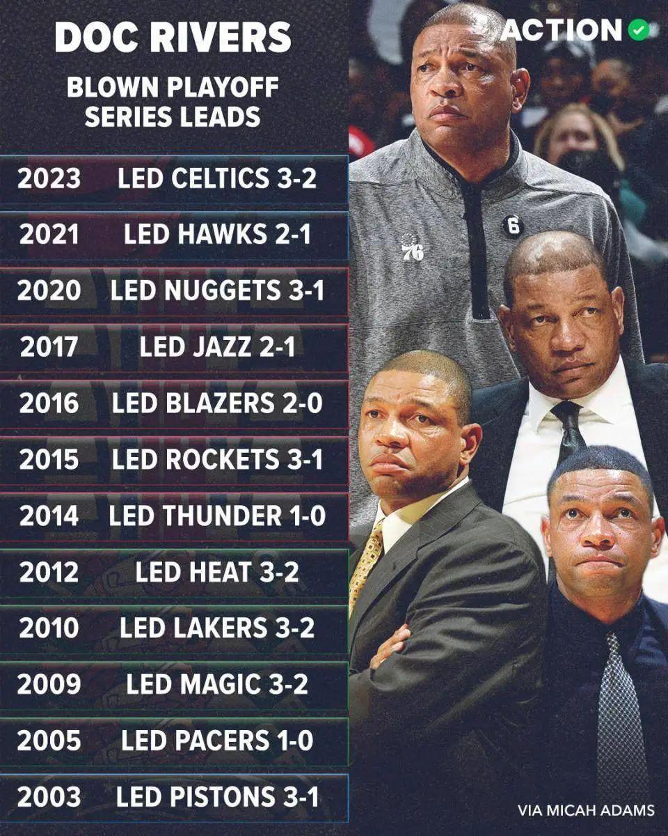 裏弗斯執教生涯12次在系列賽領先的情況下被逆轉,7次在率先拿到賽點的情況下輸掉系列賽,其中包括3次3-1領先被逆轉!