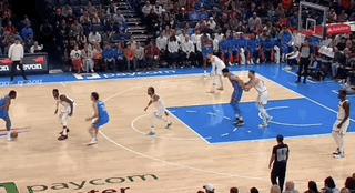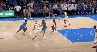 很難想象22歲的杰倫·威廉姆斯已經有了很多32歲側翼都無法兼備的成熟技術和心態。早在大學時期,威廉姆斯就以全範圍的投射能力見長,在雷霆隊,他迅速適應NBA的強度,繼續在中距離投出55%的準心,甚至長兩分都有48%的命中率。當年輕側翼們紛紛選擇魔球化時,威廉姆斯卻打得愈發古典,左路中距離漂移幹拔成了他最愛用的殺招——他的投籃手分明是右手。