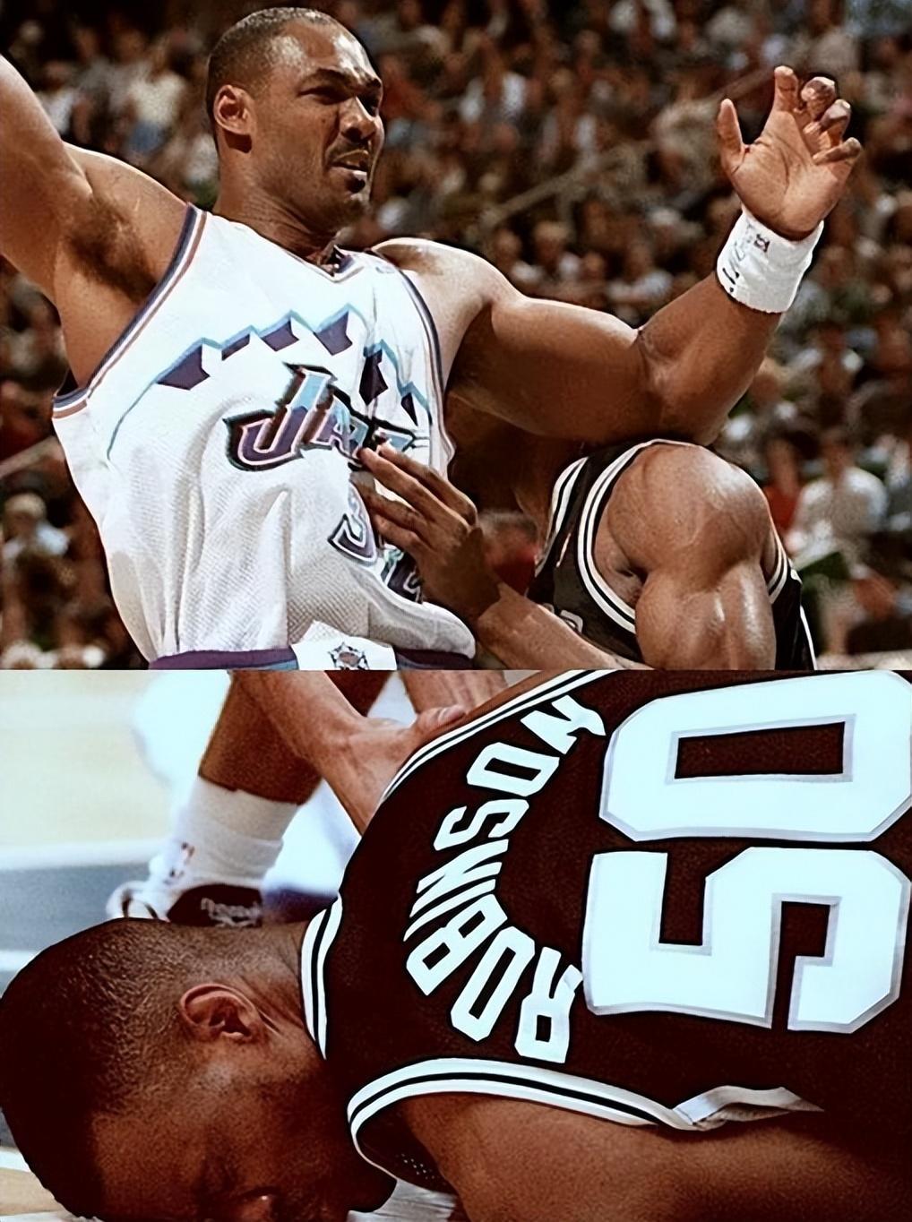 作爲NBA之前聯盟最出名的常青樹,綽號郵差的卡爾-馬龍,也是一個肌肉男。尤其他的手臂肌肉,更是讓人聞風喪膽。而之前,馬龍在和羅賓遜的對位中,一肘打到羅賓遜的後頸脖,結果這一下重擊直接讓羅賓遜倒地不起,瞬間昏迷,你就知道馬龍的力量有多強了。