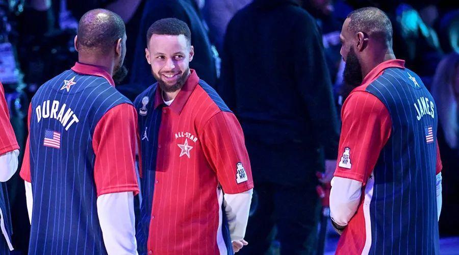 在賽前,我個人對本屆全明星最大的期待就是:詹姆斯、庫裏、杜蘭特,這三位NBA現役球員最多榮譽、最大影響力的代表,歷史性地成爲了隊友。三個人同時披上同一件球衣,還是開天闢地頭一遭。