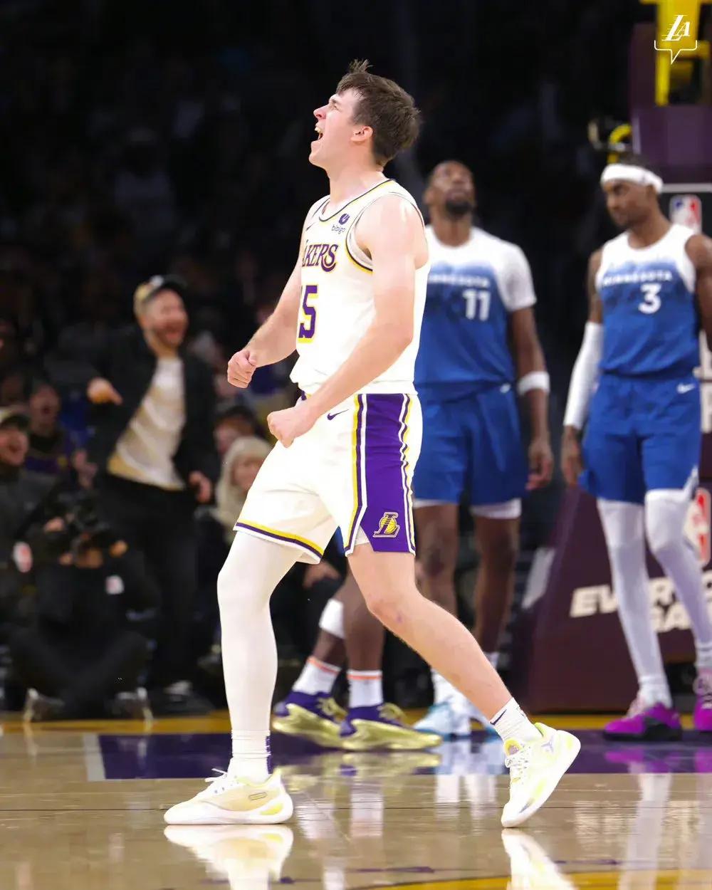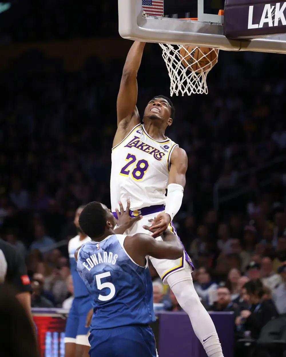 除了詹姆斯、戴維斯和裏夫斯三巨頭之外,今天八村塁和海斯也有不錯表現,八村塁拿到15分2籃板3助攻,海斯則是高效的4投4中拿到9分5籃板,完美的在替補席貢獻了屬於他的力量。而森林狼河這邊,除了愛德華茲和裏德之外,球隊只有沃克的表現能夠看的過眼,再加上擁有神祕東方力量的李凱爾在今天也沒能出戰,這才導致了森林狼最終的遺憾輸球。
