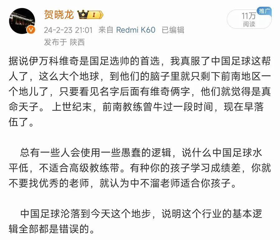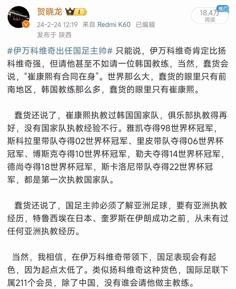 我不知道中國足協爲什麼對前南斯拉夫國家的足球教練這麼熱衷,20多年前,前南教練確實風光,遍佈五大聯賽,而且執教的球隊不乏豪門。但現在,前南教練在五大聯賽的大球會中都快絕跡了。對於名字後綴爲“維奇”的教練,我看着都頭疼。再次重申,我對伊萬科維奇的質疑絕不是馬後炮,大家可以看看足協確定他爲國足主教練時我發的微博。