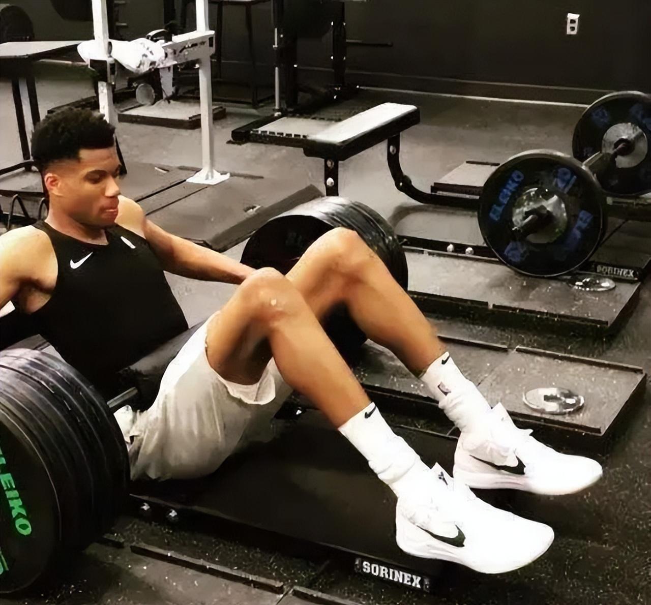 說到NBA進入聯盟前後變化最大的球星是誰,那麼無疑有字母哥的名字了。從剛進聯盟時的高瘦麻稈,到如今成爲快攻衝起來無敵的希臘怪物、兩屆MVP、1屆總冠軍和FMVP獲得者,字母哥的變化,無疑和他夜以繼日的訓練有關了。之前有記者拍到字母哥訓練的圖片,我們不難發現,字母哥拿着多達10片的槓鈴片做臀橋,據說這個重量高達300斤!你就知道字母哥的力量有多強了。
