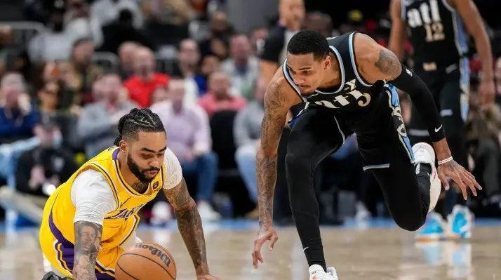 德安吉洛·拉塞爾一個箭步抓下防守籃板,把球交給身邊的勒布朗·詹姆斯,然後以龜速走向前場,在弧頂看完詹姆斯一打五的拉桿反籃之後,他奔向老鷹前鋒杰倫·約翰遜,用一個熱烈的擁抱宣告了自己這場比賽已經打完收工。