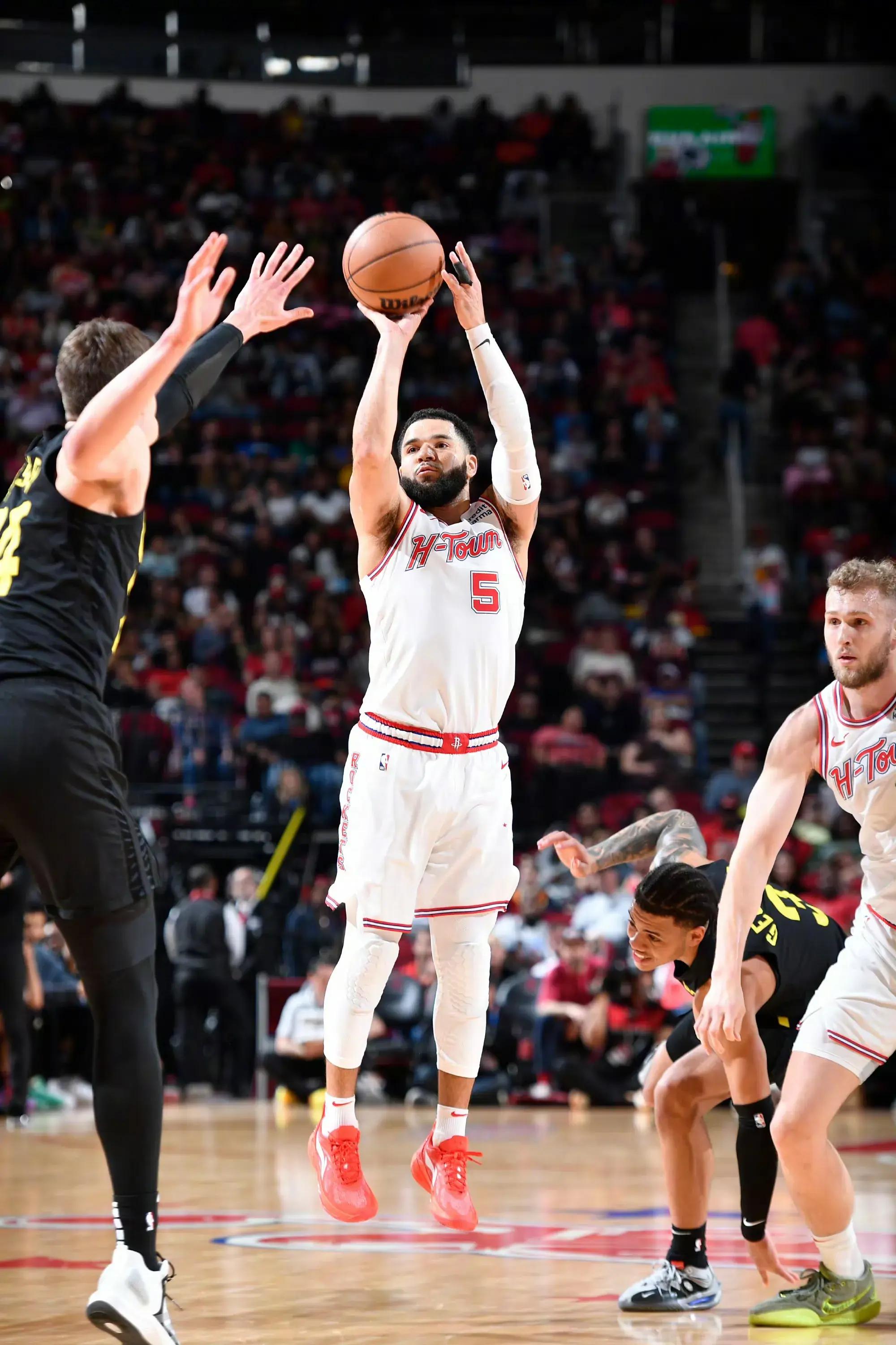 火箭隊主場擊敗爵士隊豪取八連勝,目前距離西部第十的勇士隊,僅有兩個勝場差,火箭隊後衛杰倫格林本場比賽繼續延續火熱狀態,他出戰33分鐘,投籃22投中15,三分球11投中7,格林裏突外投拿下41分4籃板4助攻1搶斷的數據。
