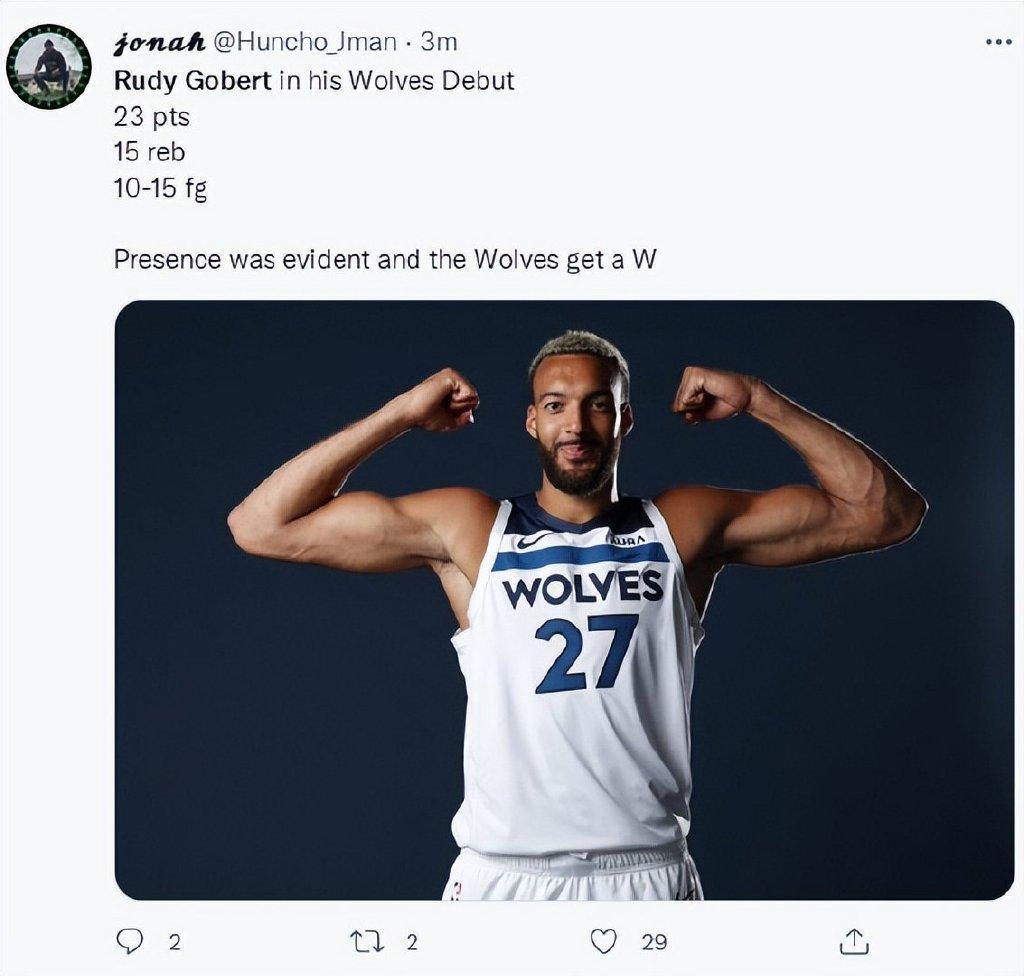 今天,戈貝爾在森林狼首秀,就有15次出手,甚至比他上賽季在爵士的最多出手數還高!