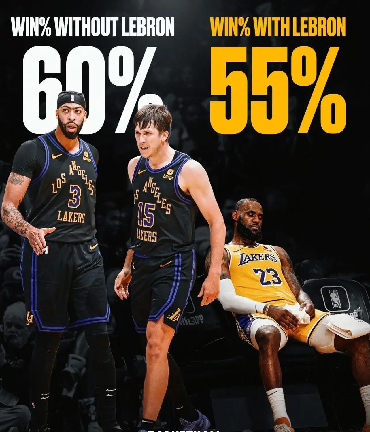 本場比賽,詹姆斯選擇復出,但在賽前官方給出的數據來看,本賽季湖人隊在詹姆斯缺席時,球隊勝率達到了60%,而一旦詹姆斯迴歸參賽,球隊勝率也是下降到了55%。正所謂贏球不可怕,缺誰誰尷尬,昨天沒有詹姆斯湖人逆轉了雄鹿,今天面對“軟柿子”灰熊,老詹也是全力出擊,勢必要拿回屬於自己的顏面。