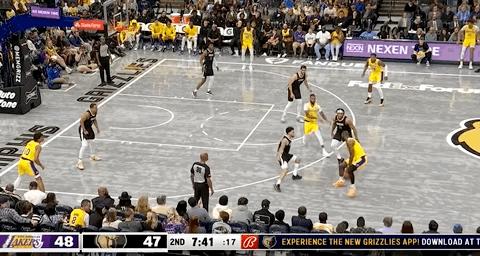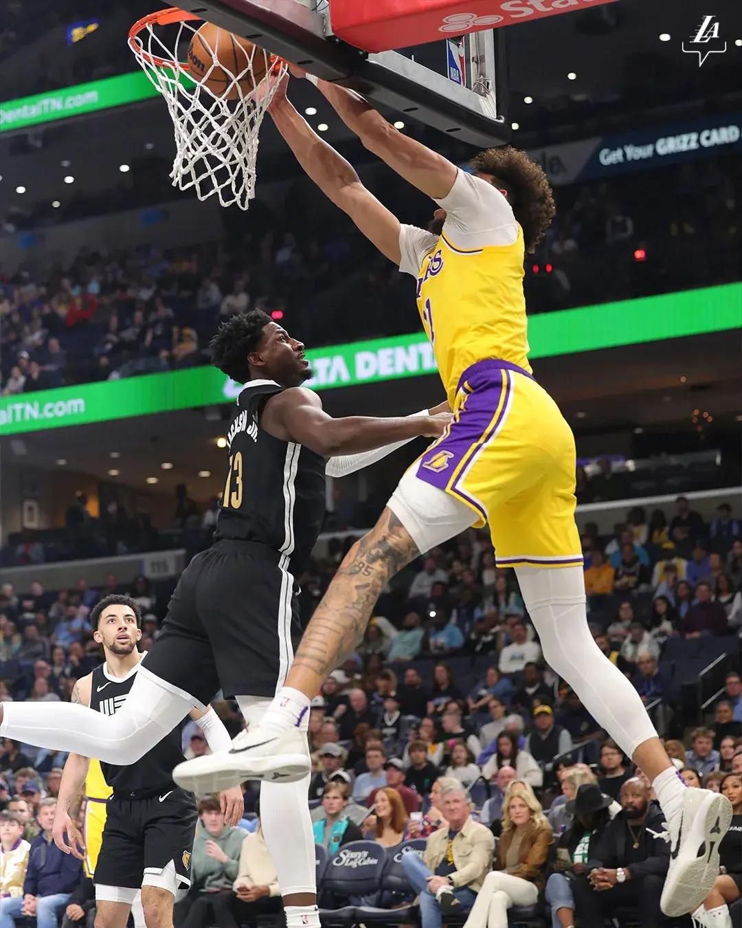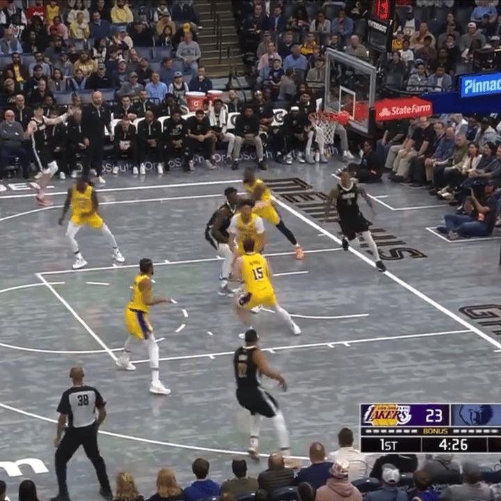 在隊友的幫助下,詹姆斯第一節也是三次籃下進攻得手,單節拿到6分3籃板1助攻,頂替濃眉哥首發出場的海斯,在內線也是喫餅喫到吐,籃下連續進攻拿到8分,湖人隊在第一節也是以37比36領先灰熊一分。