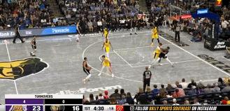 來到第二節之後,湖人隊的攻勢依舊不減,這一節詹姆斯內線又是三投三中拿到7分,同時還搶下4個籃板,送出4次助攻。