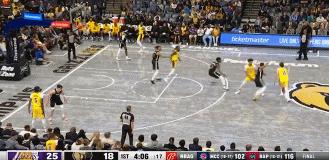 首節比賽一上來,雙方就展開了對攻大戰,湖人隊在詹姆斯的帶領下頻頻反擊得手,裏夫斯也扮演起進攻組織官的角色,第一節比賽裏夫斯一個人就貢獻了5次助攻,幫助詹姆斯、海斯以及八村塁都連續完成輕鬆得分。