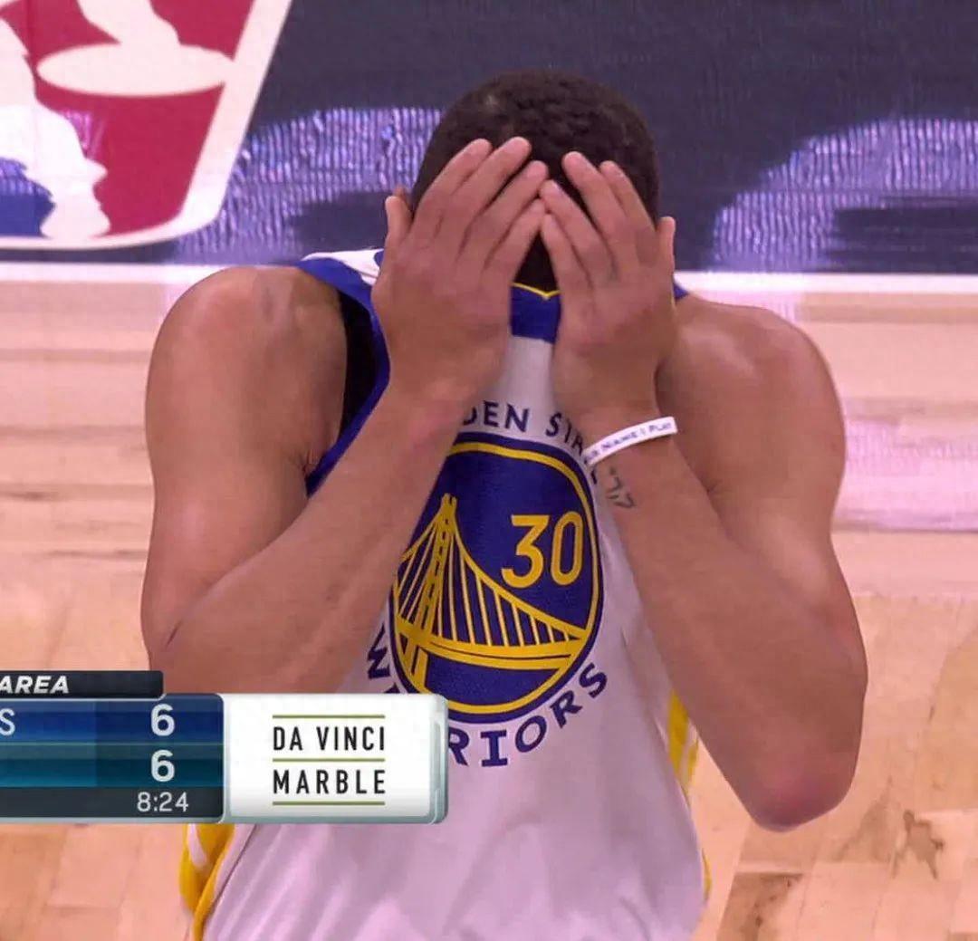 格林驅逐後,庫裏用球衣擋住臉,眼眶通紅,貌似哭了...把所有無奈和失落,都寫在了臉上。