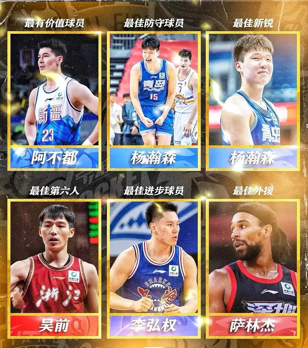 其餘的像進步最快球員獎,歸屬於上海久事男籃的李弘權,本賽季李弘權場均可以貢獻11分6.4籃板和2.0助攻,相比於上個賽季場均4.9分2.6籃板0.5助攻的表現確實進步非常明顯,但需要注意的是,李弘權本賽季的場均出場時間,相比於上個賽季也同樣翻了一倍,相比較而言,個人認爲新疆隊的齊麟、寧波隊的阿爾斯蘭,要比李弘權更適合進步最快球員獎項。同時讓人感到疑惑的,還有最佳陣容的票選,官方票選的最佳陣容第二陣容,由余嘉豪、張鎮麟、齊麟、崔永熙和胡明軒組成,但是從數據層面來看,本賽季有着非常出色表現的原帥、張寧、程帥澎等人 其實要更適合入選最佳陣容第二陣容的名單。