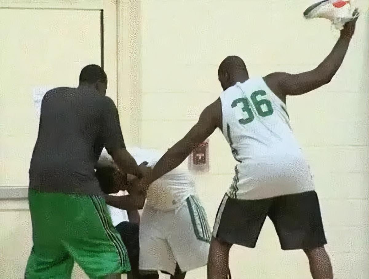 再比如,在一次凱爾特人的隊內訓練中,羅賓遜趁其不備從後面騎扣了奧尼爾,扣完籃的小土豆轉身就跑。