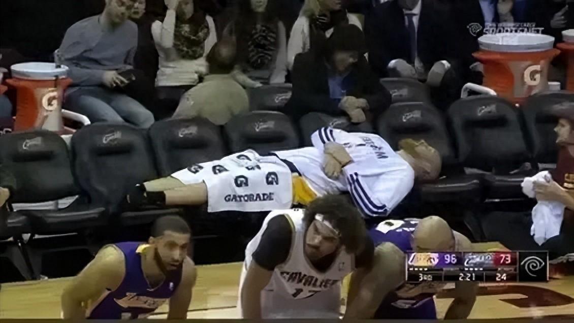 從那以後,湖人就此開始加速衰敗,開始墊底時光。最標誌性的一幕,13-14賽季,老卡曼躺在空蕩蕩的球隊替補席。