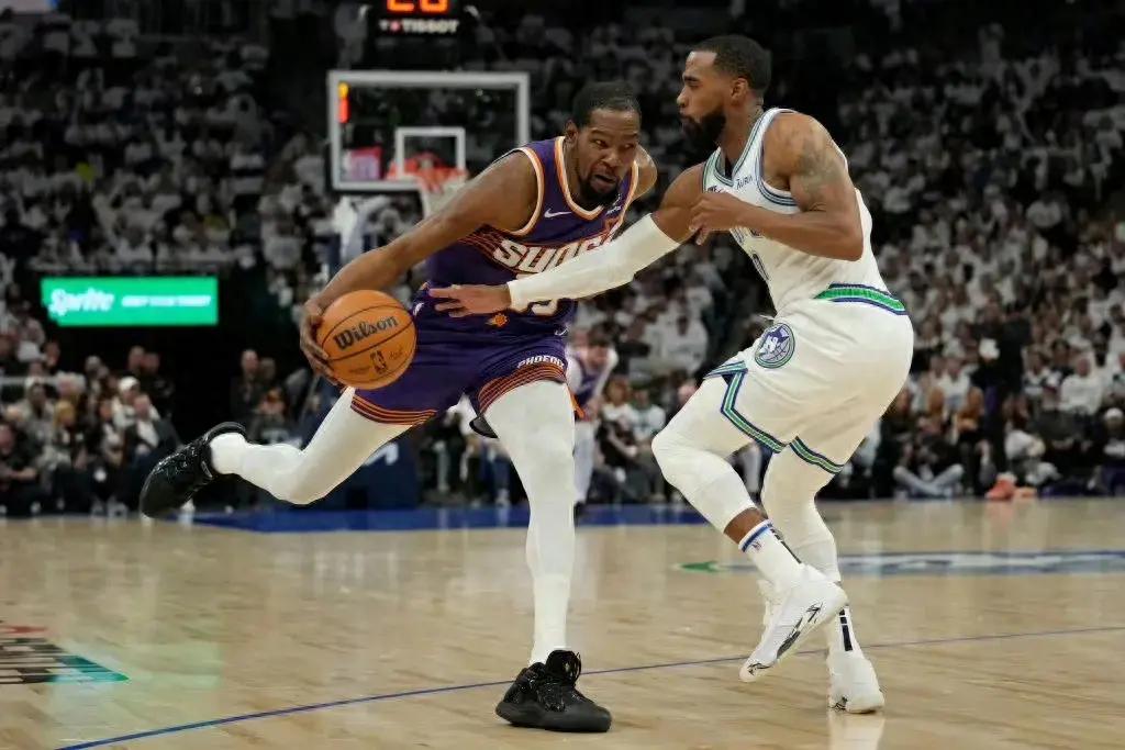 後者的優勢在內線防守,但杜蘭特、布克、比爾都是中距離大師,球隊沒有什麼內線單打的戰術...