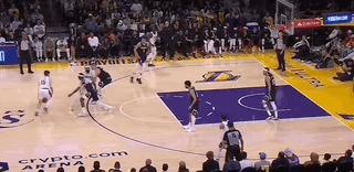 這一回合更是穆雷-約基奇-戈登連線的完美復刻。只是策動擋拆的是裏夫斯,接球順下的是濃眉,而溜底線切入喫餅的換成了詹姆斯。