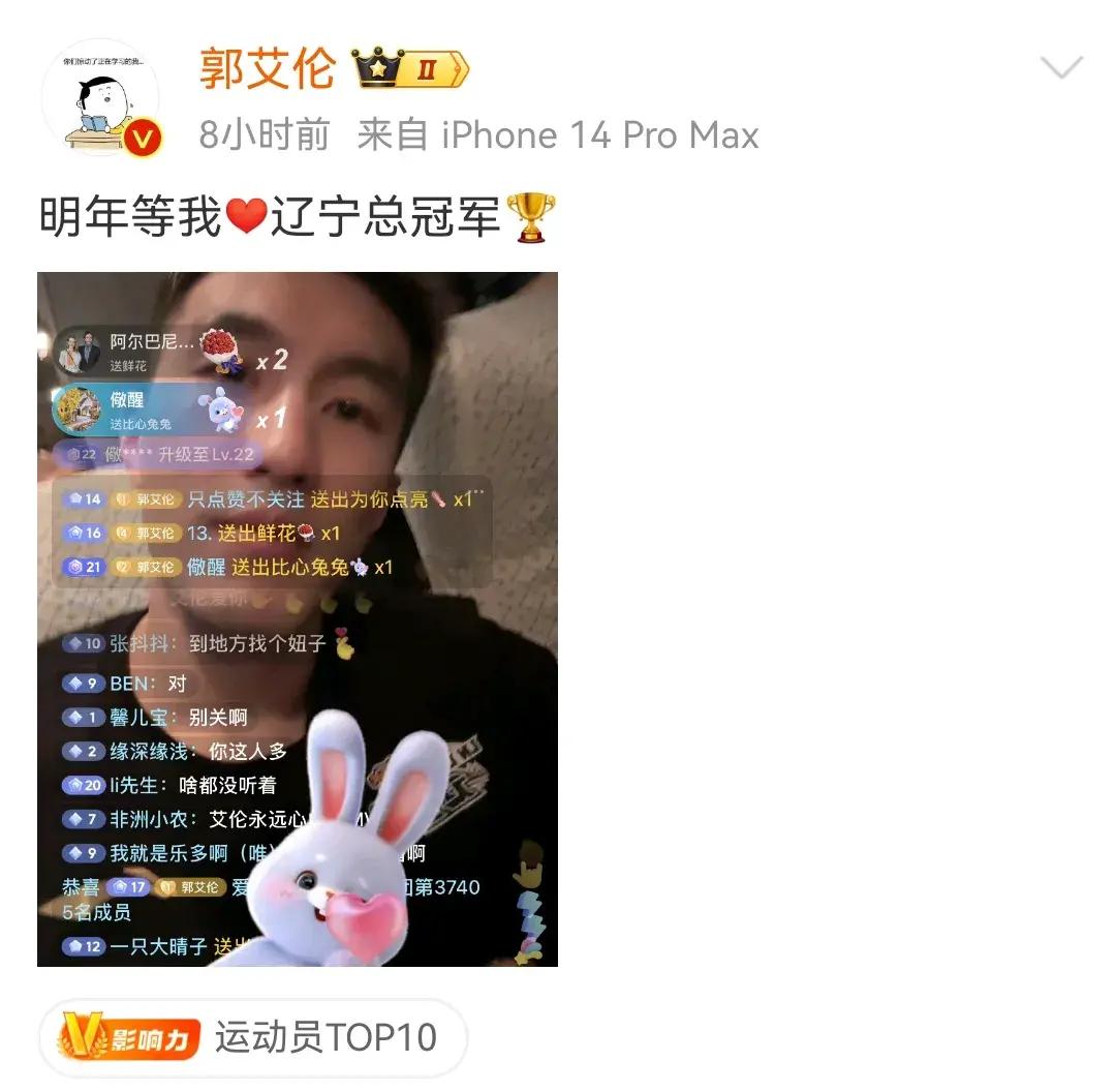 就在遼寧男籃完成三連冠偉業之後的深夜,郭艾倫也是罕見的更新了個人社交媒體,用簡短的幾個字宣佈了他未來的規劃和決定。衆所周知,郭艾倫在2022年與遼寧男籃簽訂了一份爲期兩年的頂薪合同,今年夏天他的合約就將到期,對於郭艾倫職業生涯的下一站,很多球迷都在猜測,不確定郭艾倫是否會選擇離開。而郭艾倫在昨晚發佈的這條社交動態裏也是向球迷明確表示,要讓大家明年等着他,他要和隊友一塊繼續帶領遼寧拿下總冠軍。“明年等我”這四個字也是令人無比興奮、激動人心,包括郭艾倫在賽後接受採訪時他也向球迷承諾,自己永遠不會離開遼寧男籃,相信在艾倫身上,我們未來一定能夠看到一人一城、終老一生的佳話。