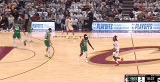 就算加蘭呼叫莫布里的擋拆,霍勒迪依然能換到莫布里面前,縱身斷掉加蘭的吊球。