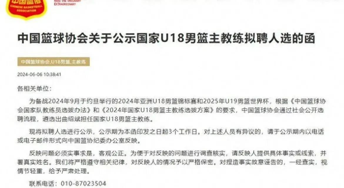 北京時間6月6日,中國籃協內部作出重要人員部署,決定聘請原廣東宏遠男籃青訓隊主教練曲紹斌,擔任中國男籃U18國家隊主教練一職。據悉,接下來曲紹斌就將前往U18國家隊報到,而他上任之後迎接的第一份挑戰,便是今年九月份的男籃U18亞青賽。伴隨着曲紹斌接手U18國家隊,中國籃壇也將迎來地震變革,或許會在未來三到五年,直接影響到CBA聯賽的格局。