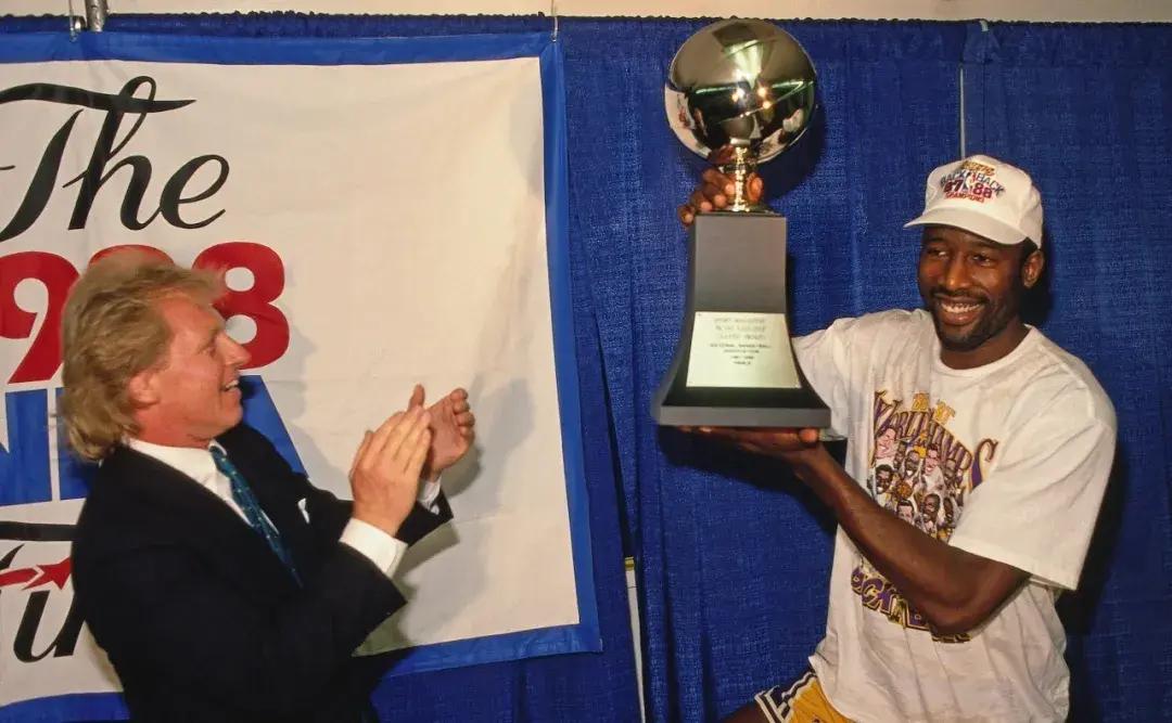 譬如1988年詹姆斯·沃西作爲球隊老2.5拿到這個獎,他的場均數據是22分7.4籃板4.4助攻0.7搶斷0.6助攻,投籃命中率49.%,但球隊老大魔術師的數據是21.1分5.7籃板13助攻2搶斷,投籃命中率55%,總失誤19次,只比沃西多1次。總體來說,無論是球隊老大論,還是俯瞰總體上的表現,魔術師都是更好的那個,至少說不比沃西遜色。問題在於,湖人在系列賽中一度大部分2比3落後活塞,第六場在活塞主場,沃西高效砍下28分,湖人險勝,而在一錘定音的搶七,沃西的數據是36分16籃板10助攻,也是他生涯唯一一次三雙。