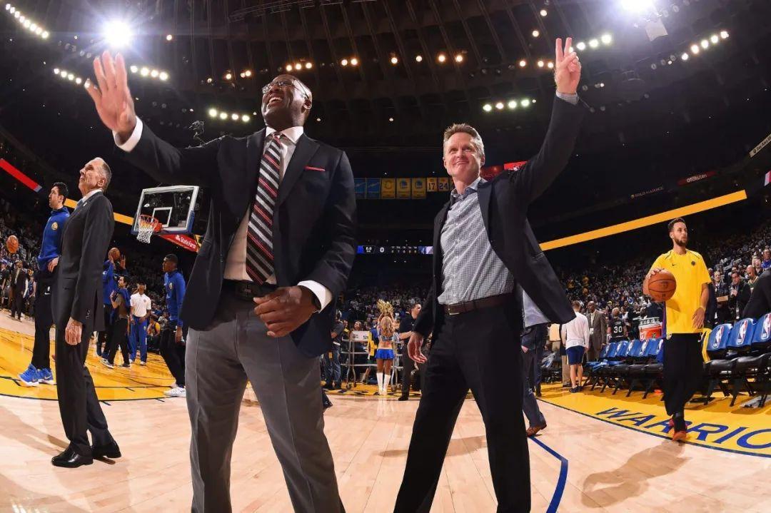 “邁克(布朗)來金州的第一年,我沒有指揮過任何戰術。我們太棒了,我幾乎不需要喊戰術。我只需要坐在長椅上。這是我跟菲爾·傑克遜學的。你手裏是一支出色的球隊,就讓他們上場。在訓練中指導他們就夠了。我幾乎不會站起來,幾乎從不喊戰術。這對他來說感到很奇怪,他會問,‘你不喊一些什麼嗎?’我說,‘不用。’”