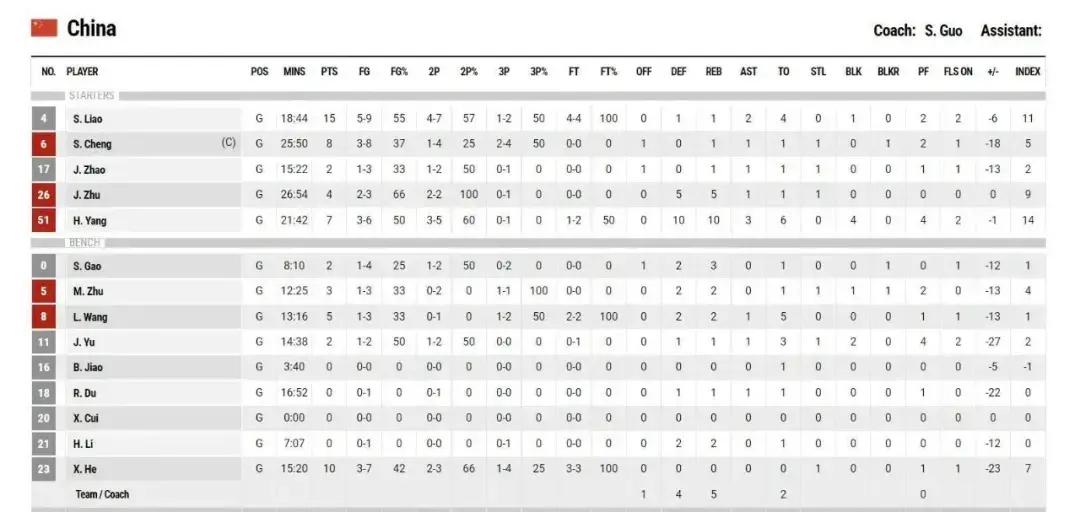 這場比賽,中國男籃發揮最出色的依舊是後衛廖三寧,全場比賽廖三寧登場18分鐘,9投5中得到了全隊最高的15分,另外在今天進入首發名單的內線新星楊瀚森也有不錯發揮,雖然個人只得到7分,但楊瀚森還有10個籃板3次助攻以及4次封蓋進賬。