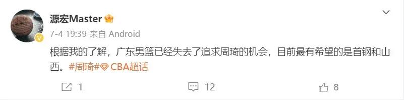這個休賽期,周琦作爲CBA自由市場最大牌的球星,他的歸屬也成爲了衆多球迷關注的熱點話題。此前,廣東宏遠男籃一直在與周琦的經紀團隊積極溝通,希望能夠挽留周琦繼續留隊,但從目前已知的情況來看,雙方的續約談判並不順利。由於新賽季CBA聯賽將實行全新的外援政策,這對於眼下財政喫緊的廣東男籃而言,想要衝擊總冠軍將會變得更加困難,這也是周琦最終選擇離開的原因之一。
