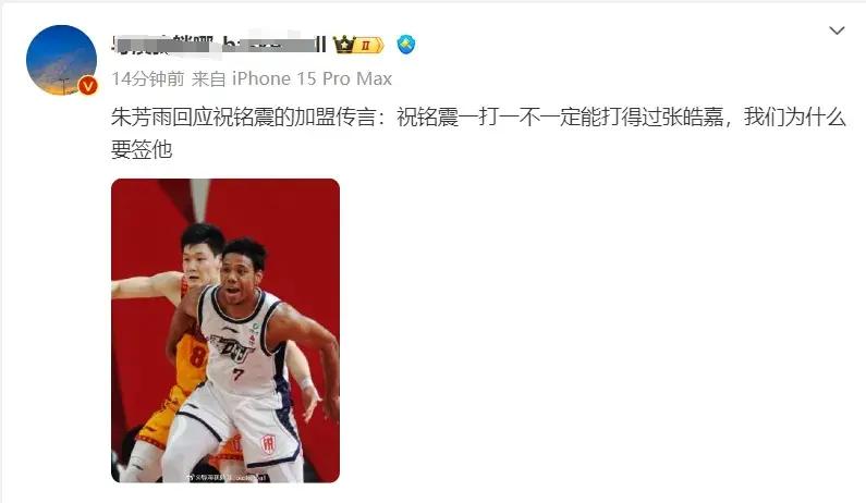 近日,有網友就祝銘震轉會一事,專門詢問了廣東男籃總經理朱芳雨。面對外界的傳言,朱芳雨也是毫不客氣的表示,祝銘震一對一單打不一定能打得過張皓嘉,廣東宏遠爲什麼要去簽約他?看似朱芳雨在用這樣舉例子的方式去否認祝銘震加盟的消息,只是他這種捧自家球員,踩一腳對方球員的做法,着實令人難以接受。